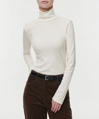 우먼즈 텐셀 슬림 터틀 넥 티셔츠 [버터 크림]
