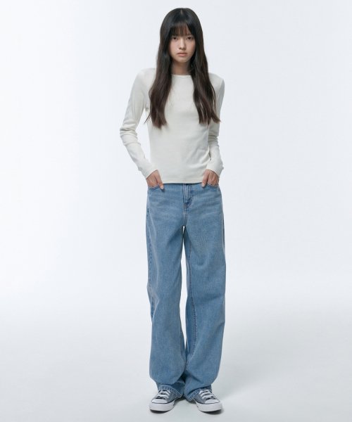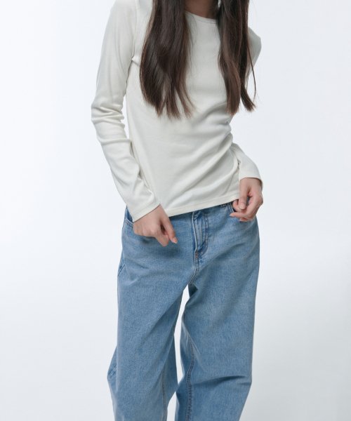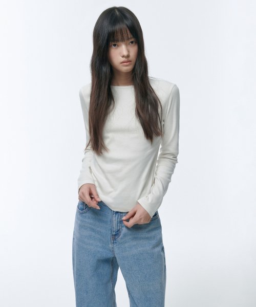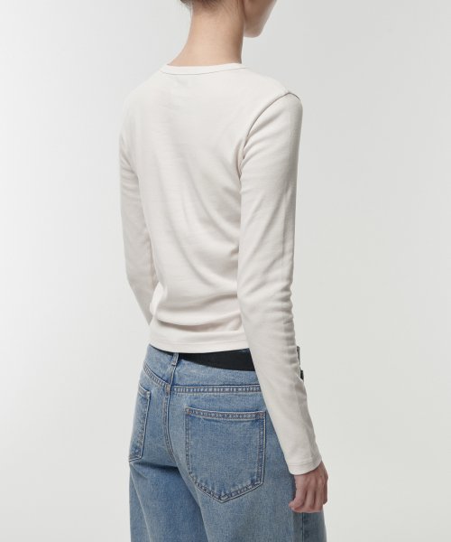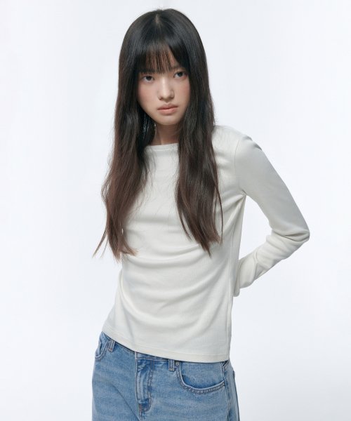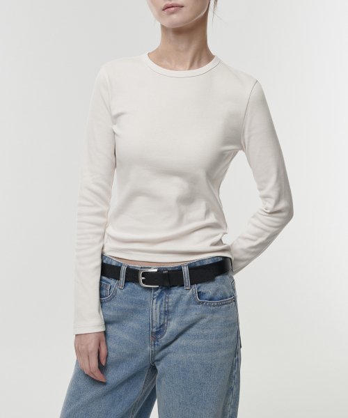 우먼즈 슬림 크루 넥 긴소매 티셔츠 [크림]