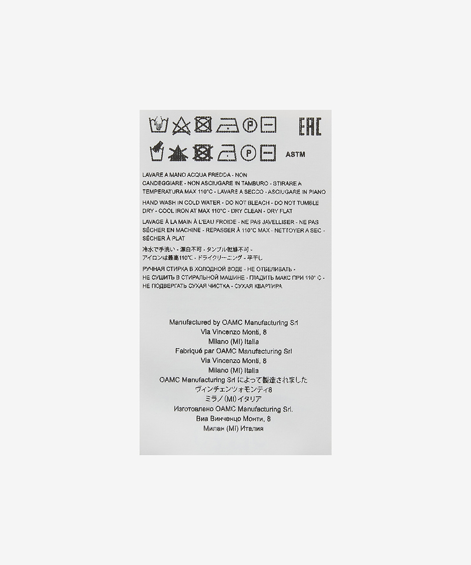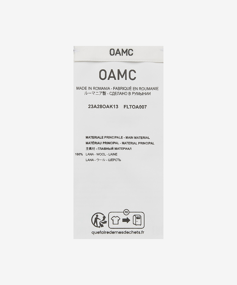 오에이엠씨(OAMC)는 2013년 칼하트 WIP와 슈프림 출신의 디자이너 듀오가 설립한 브랜드입니다. Over All Master Cloth의 약자인 OAMC는 자기표현이라는 주제 아래 만들어졌습니다. 음악, 미술, 영화, 사진 등 다양한 예술에서 영감을 받아 스트릿, 워크 웨어와 밀리터리 요소를 프리미엄 디자인에 녹여내 오래 입을 수 있는 질 좋은 제품을 제공합니다.
