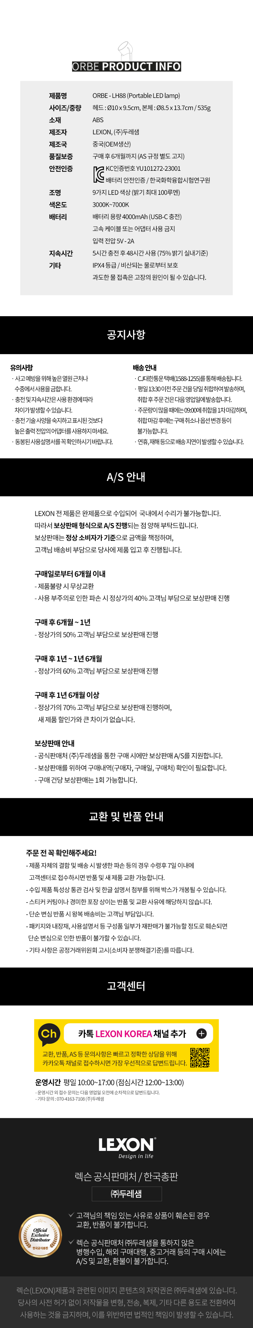 [렉슨 X 팬톤] 오르베 OREBE 디자인 LED 인테리어 무드등 - LH88PT