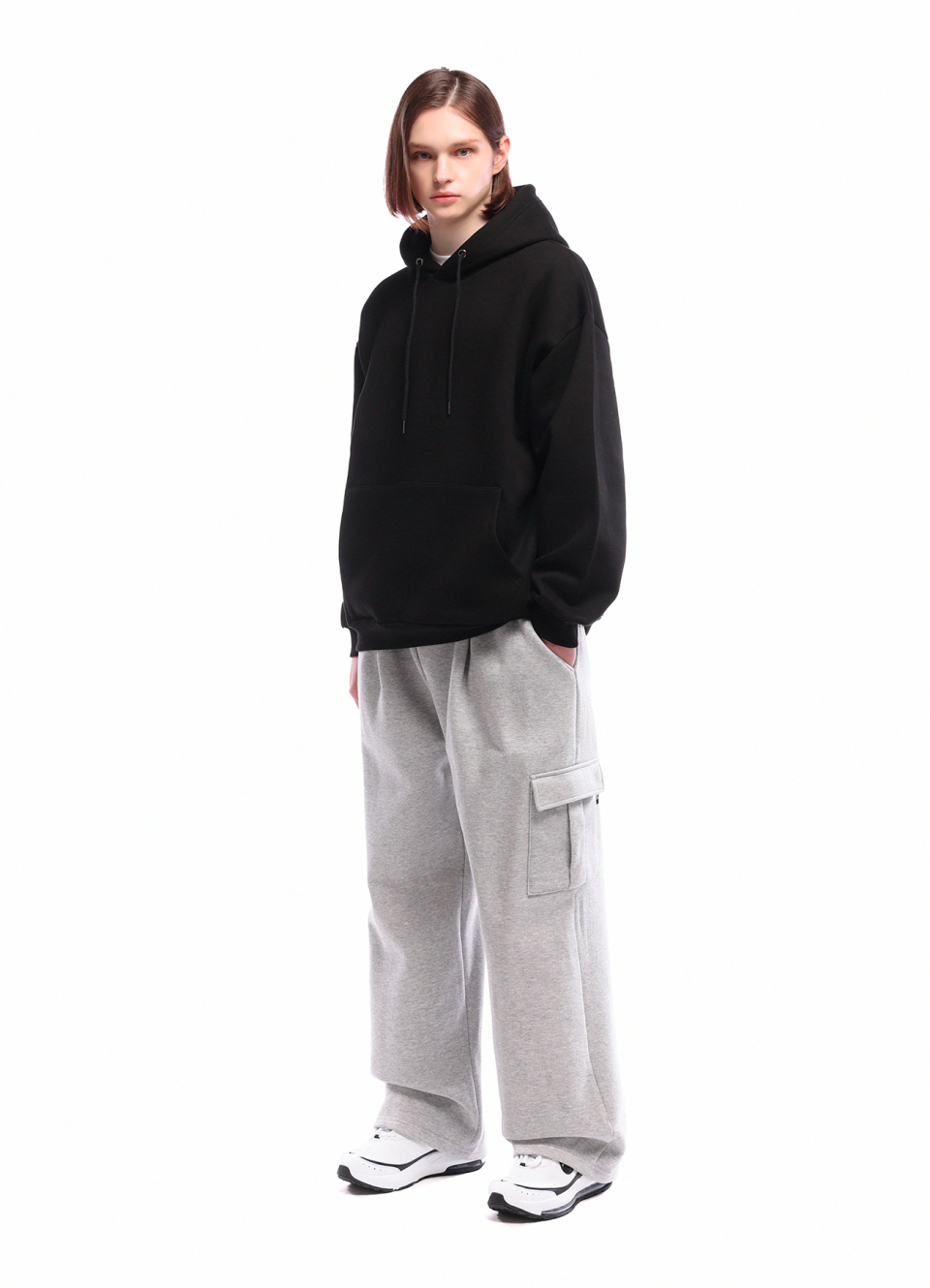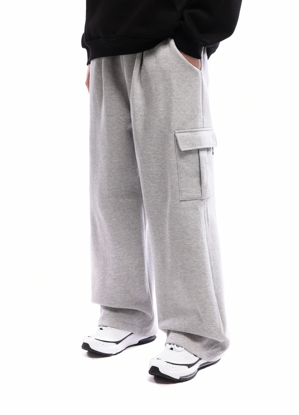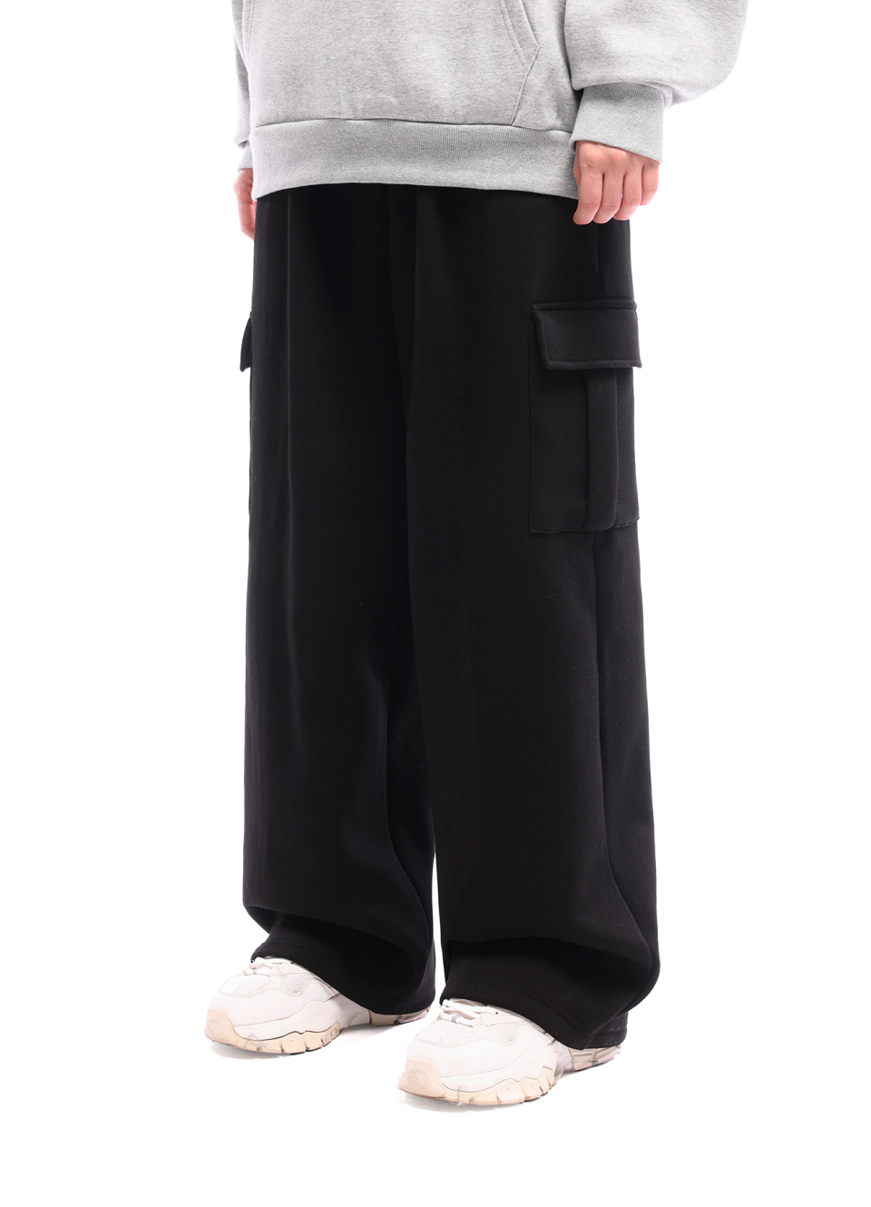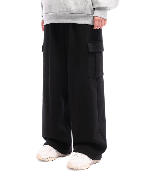카고 원턱 스웨트 와이드 팬츠_블랙