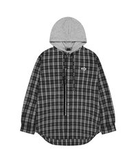 S.L CHECK ZIPPER HOODIE SHIRTS - BLACK