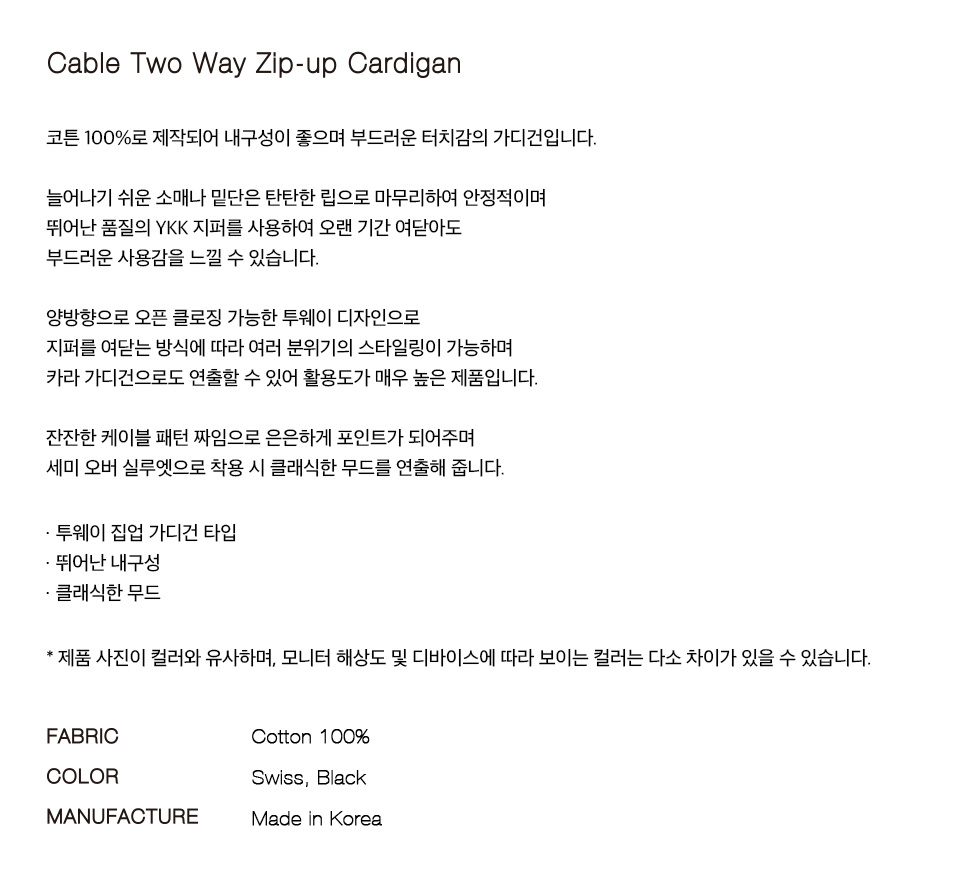 케이블 투웨이 집업 가디건 SWISS
