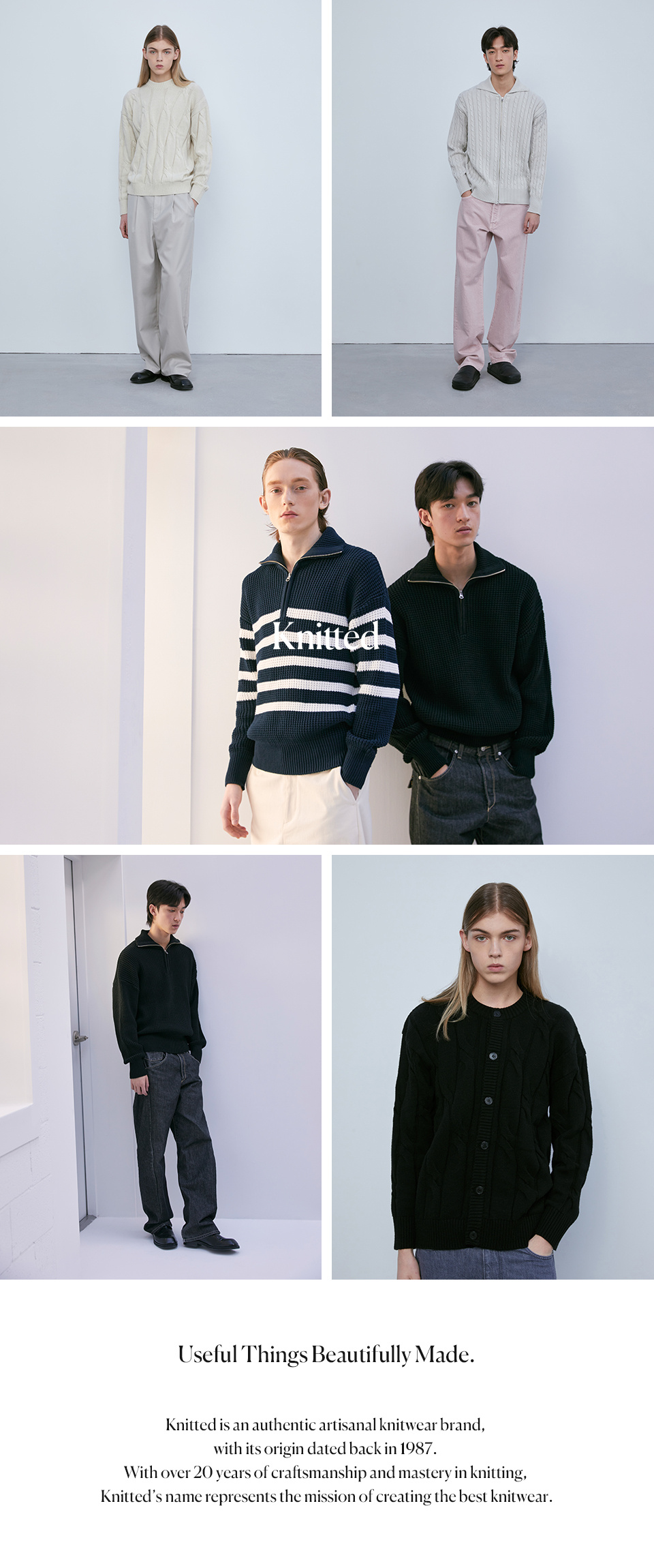니티드(KNITTED)는 'Useful things beautiful made(유용한 아름다운 것들을 만들자)'라는 슬로건으로, 제작 기반의 우수한 품질력으로 승부하는 브랜드입니다.