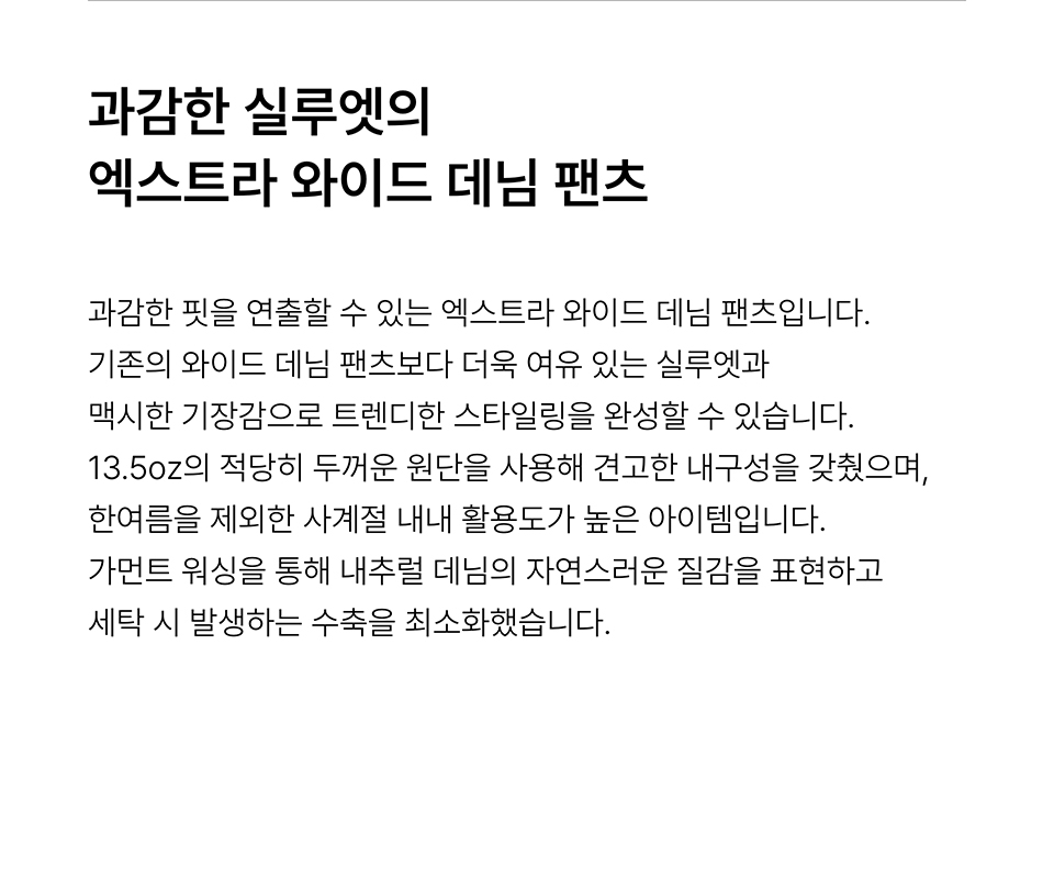 엑스트라 와이드 데님 팬츠 [워시드 블랙]