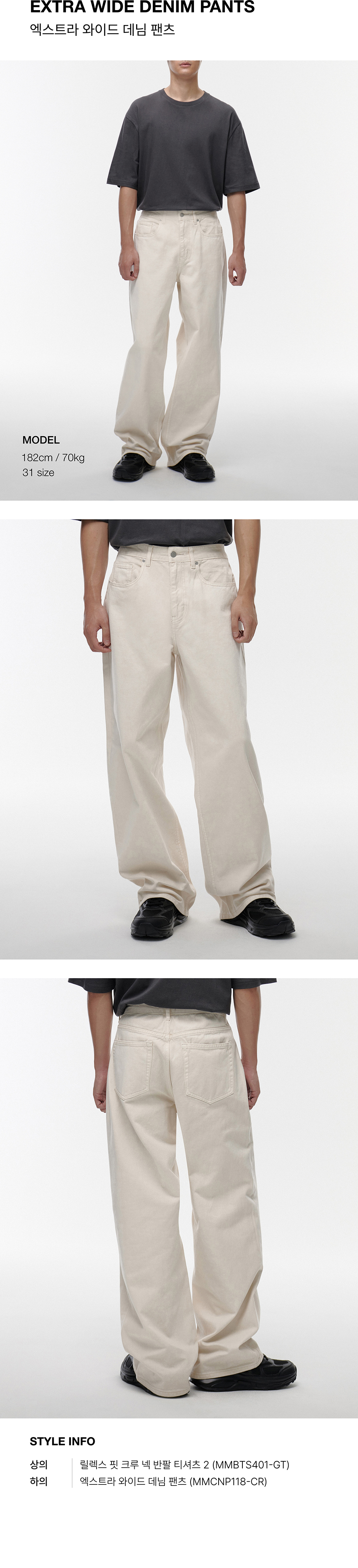 엑스트라 와이드 데님 팬츠 [크림]