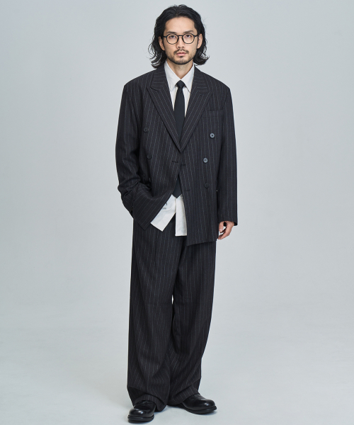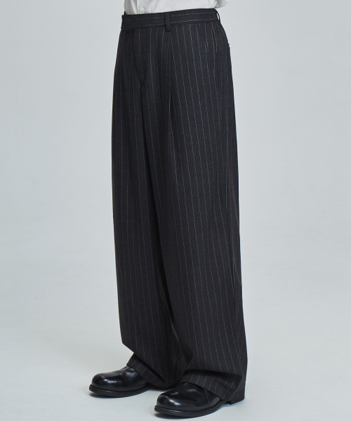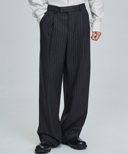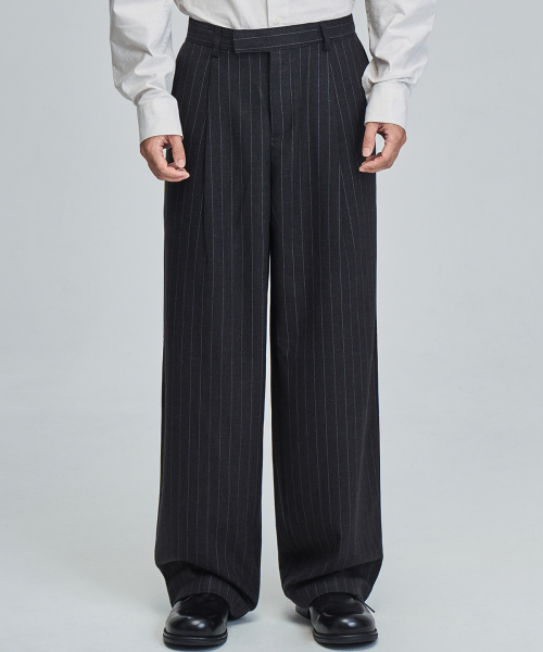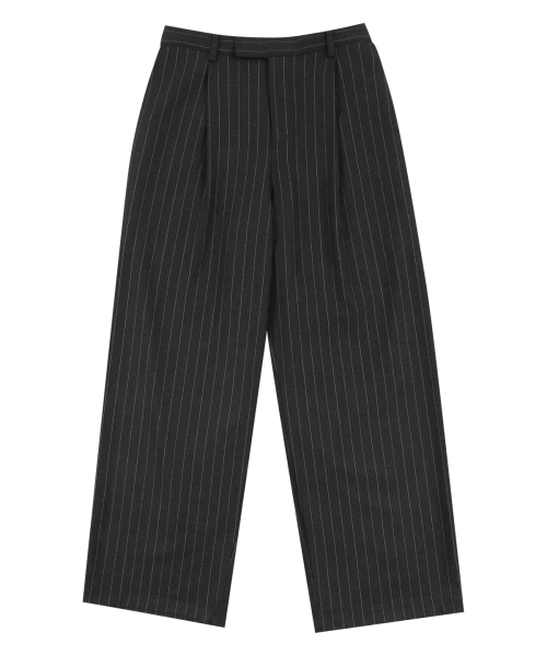 스트라이프 와이드 슬랙스 (GRAY)