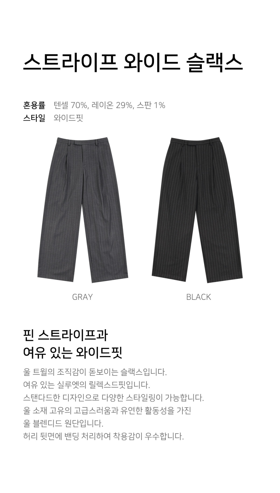 스트라이프 와이드 슬랙스 (BLACK)