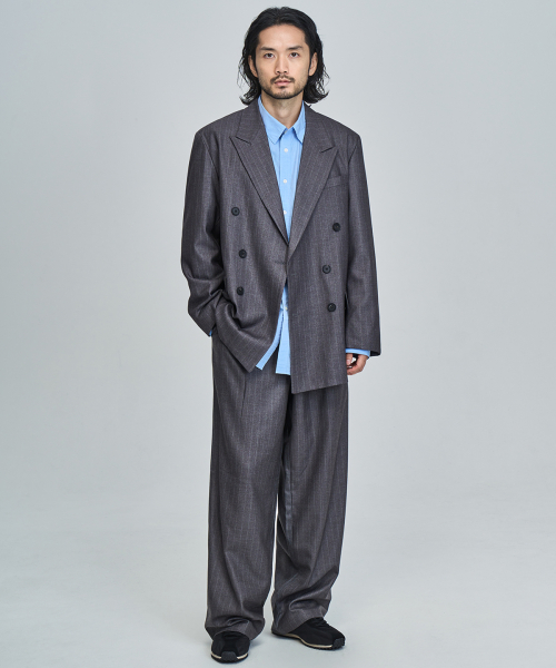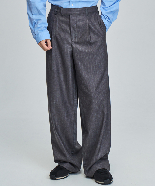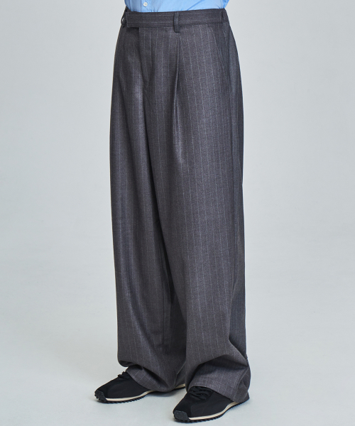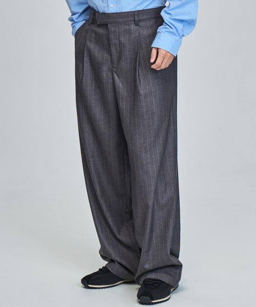 스트라이프 와이드 슬랙스 (GRAY)