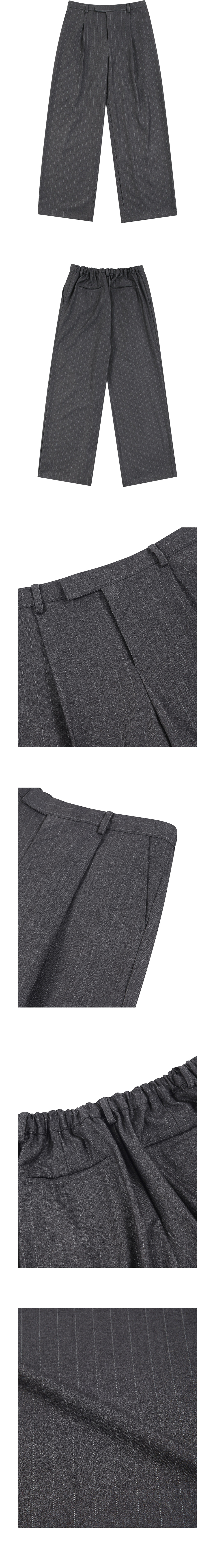 스트라이프 와이드 밴딩 슬랙스 그레이
