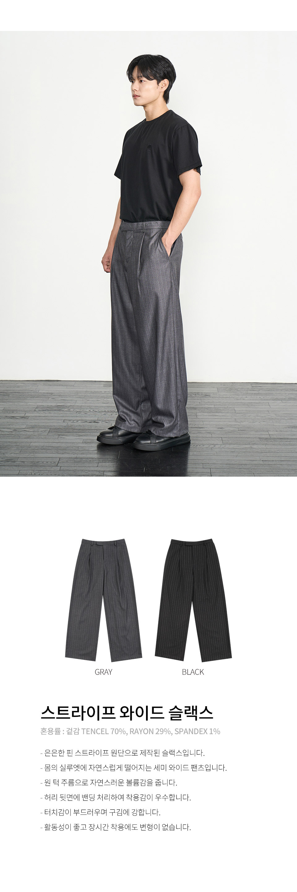 스트라이프 와이드 슬랙스 (BLACK)