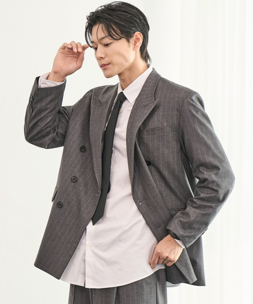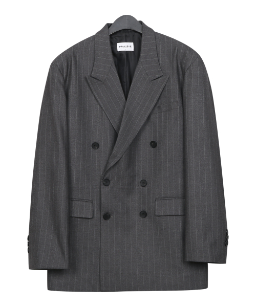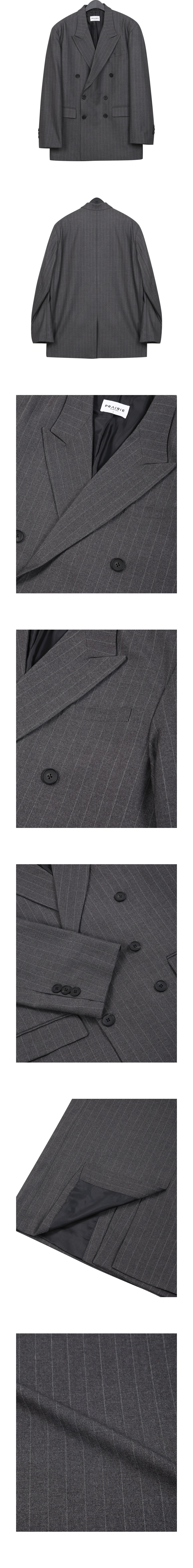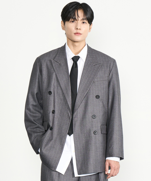 스트라이프 더블 블레이저 (GRAY)