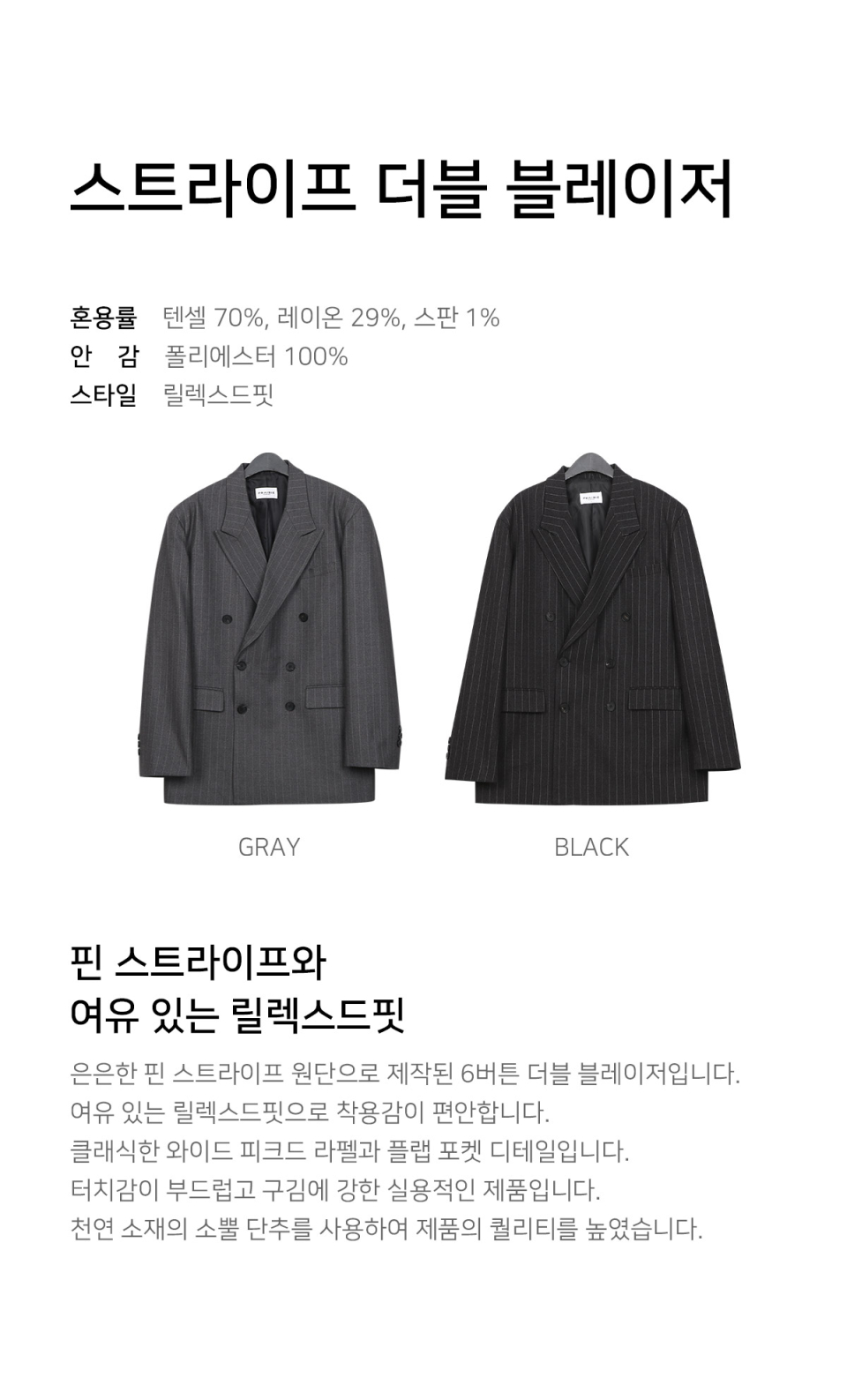 스트라이프 더블 블레이저 (BLACK)