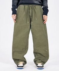 와이드 웨더링 워싱 밴딩 팬츠_카키