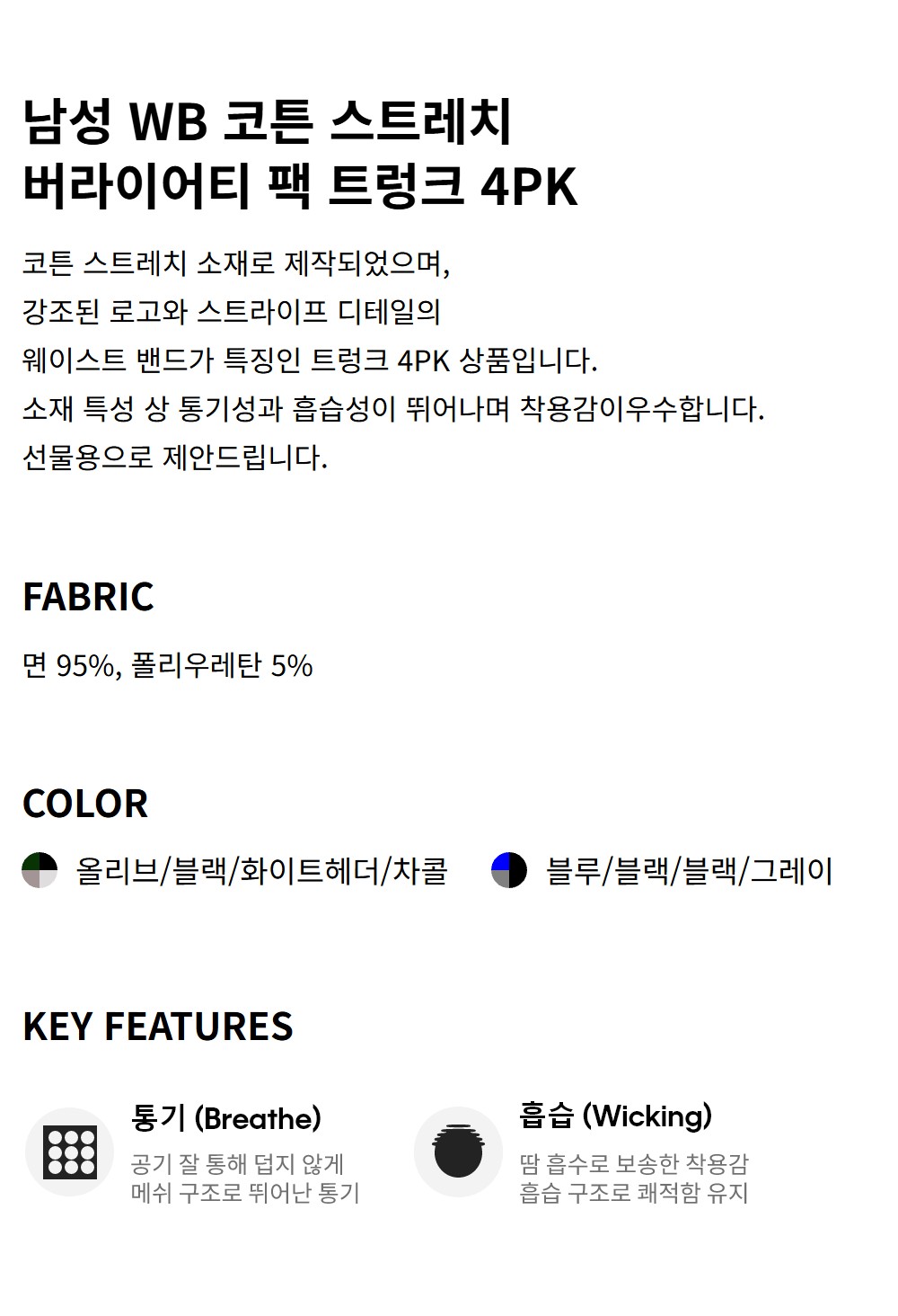 남성 WB 코튼 스트레치 버라이어티 팩 트렁크 4PK_NP2427OFIU