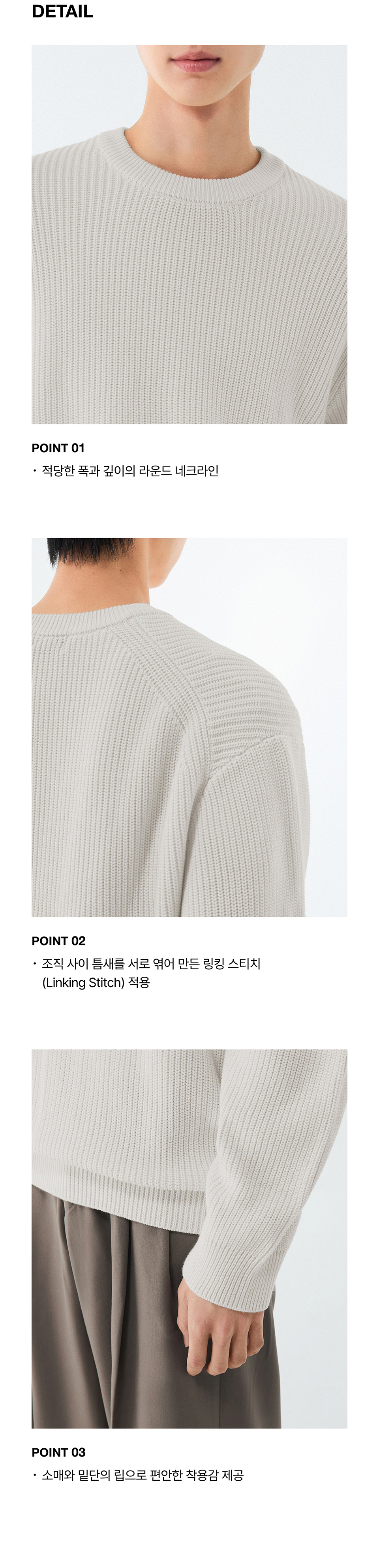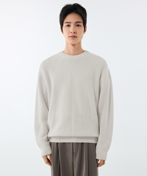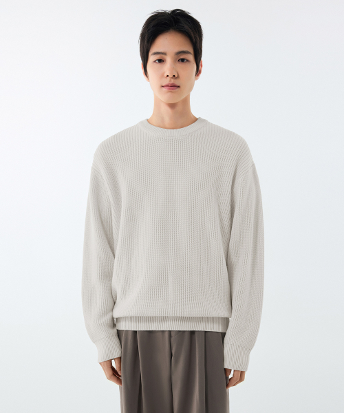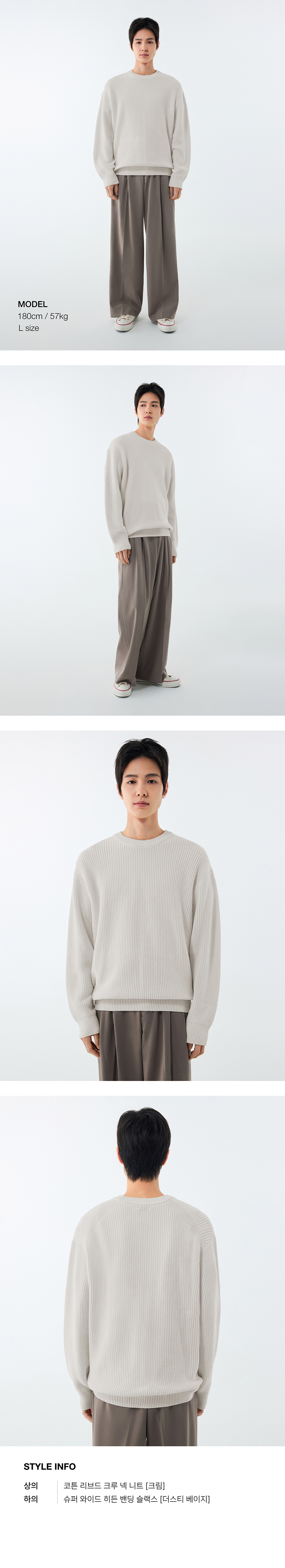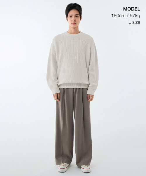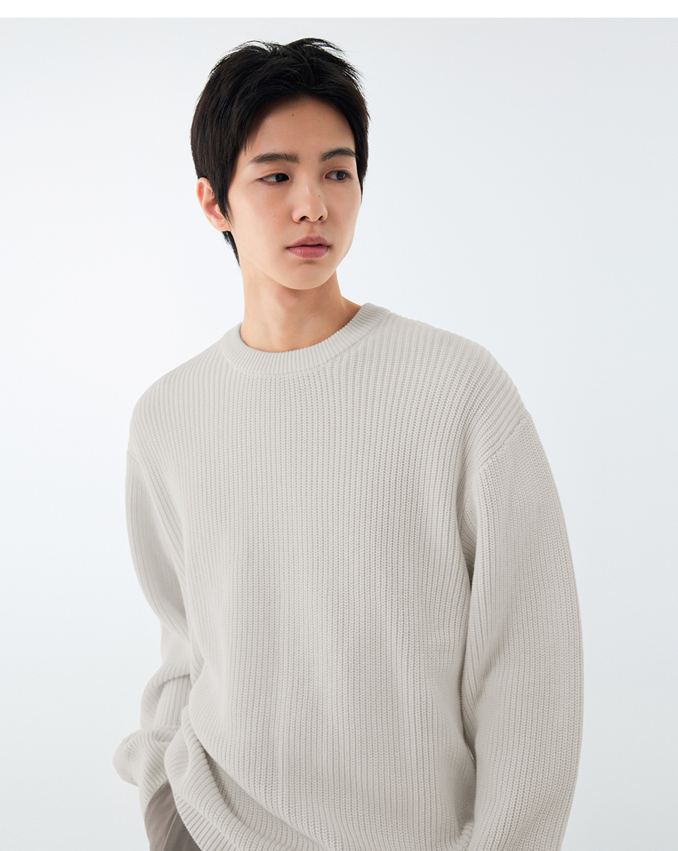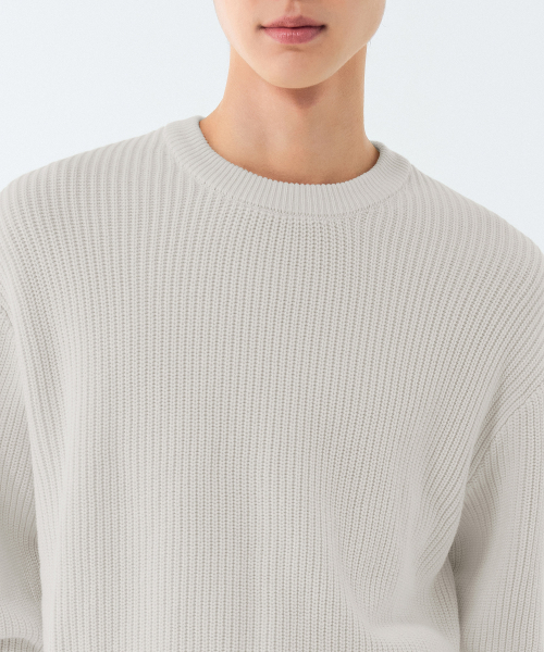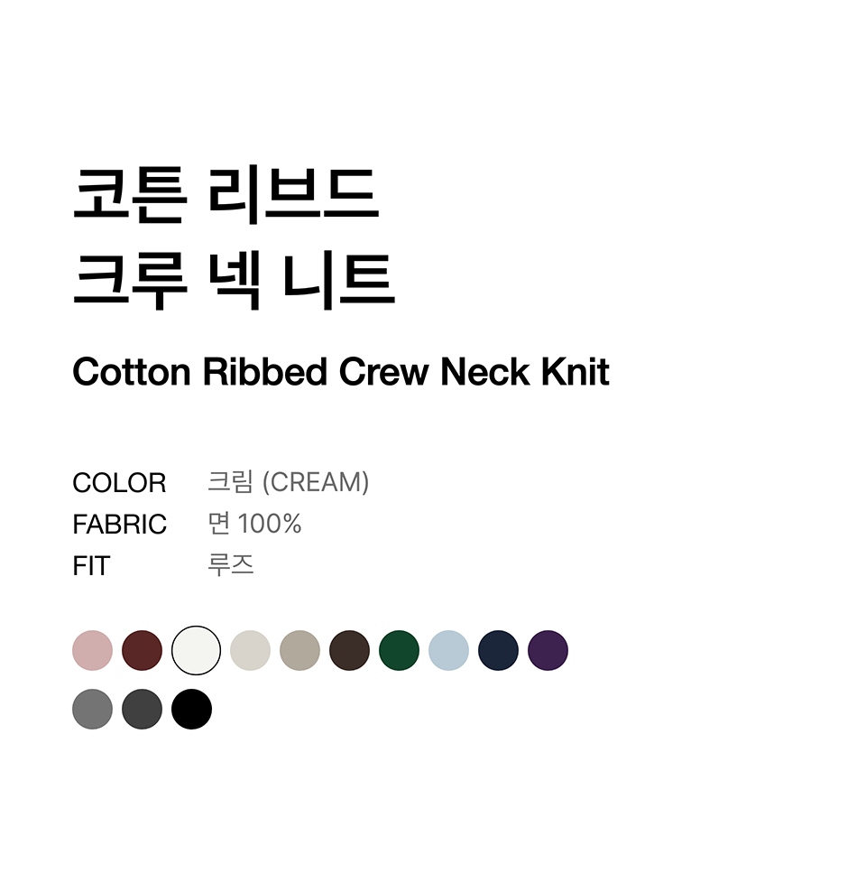 코튼 리브드 크루 넥 니트 [크림]