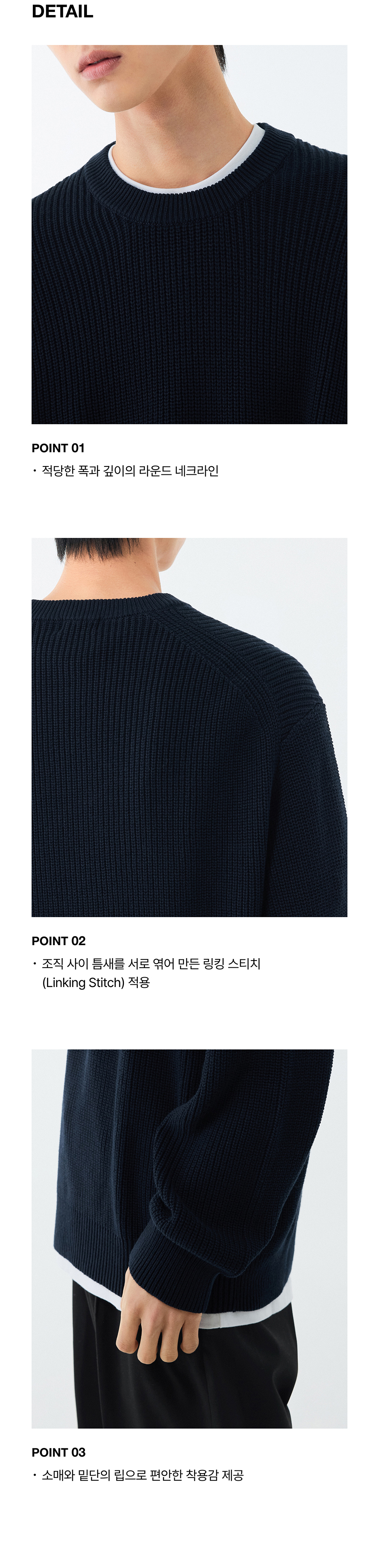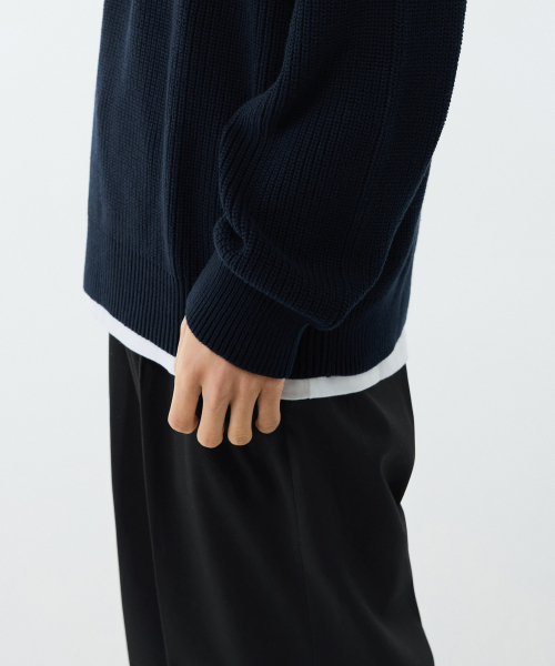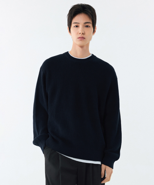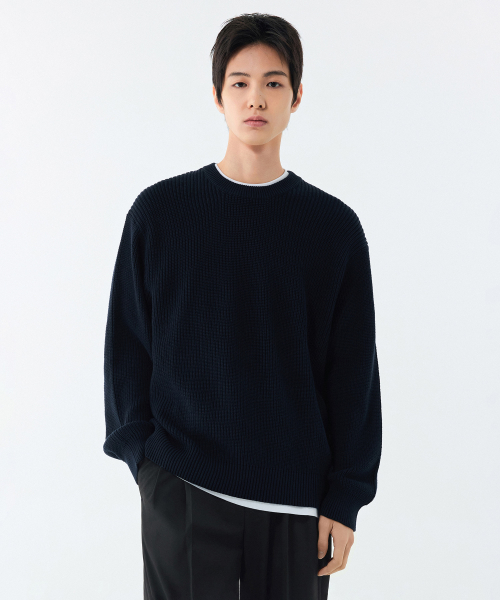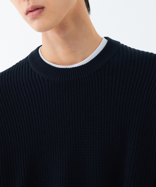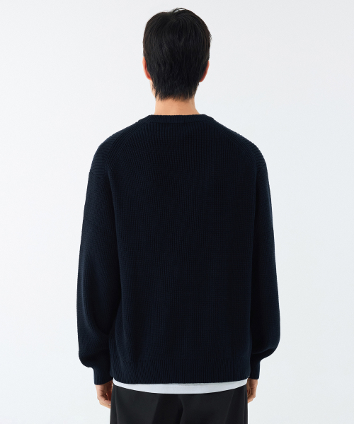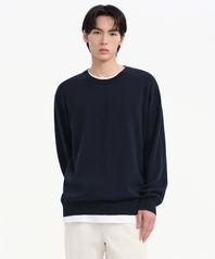 워셔블 수피마 코튼 크루 넥 니트 [네이비]