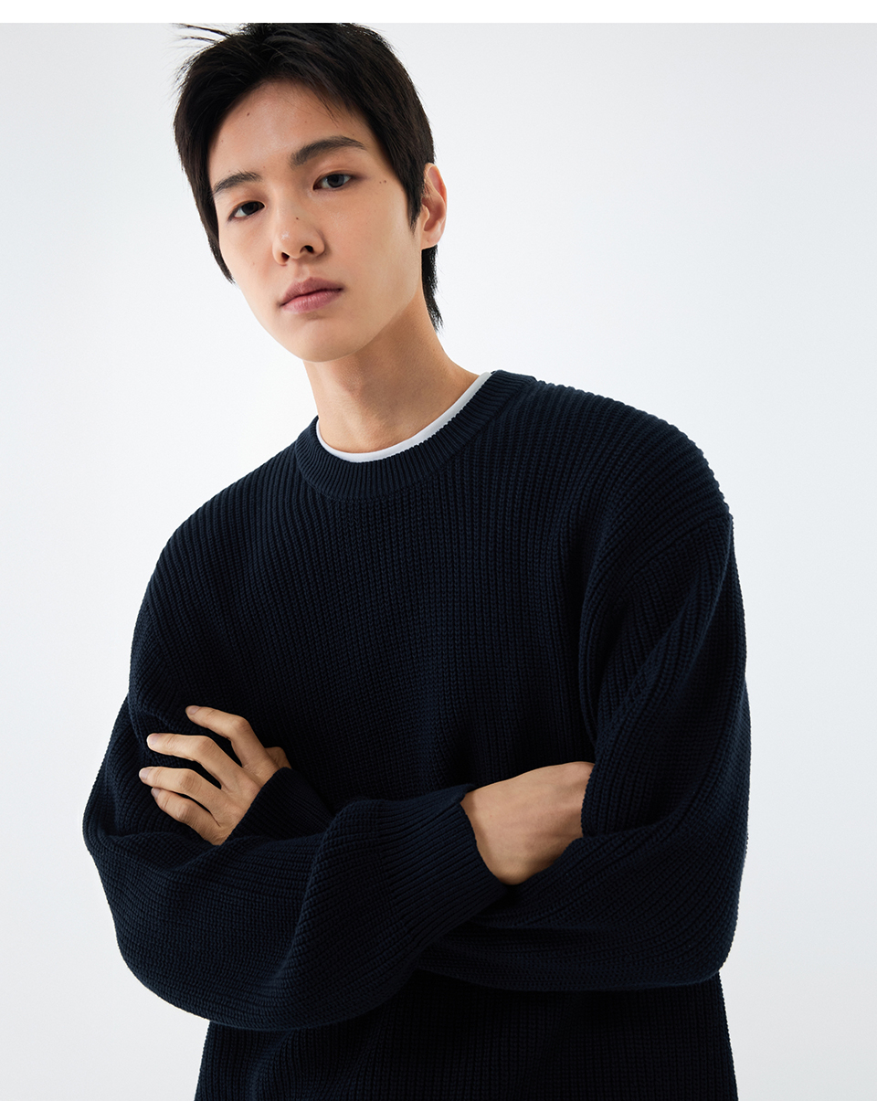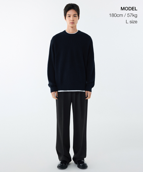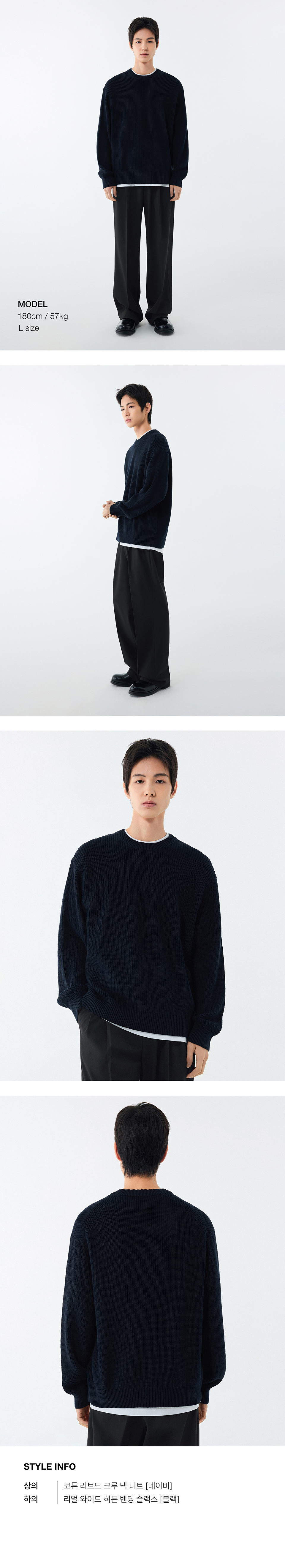 [스토커즈 컬래버] [빅토리아 울] 미니멀 리브드 크루 넥 니트 [네이비]