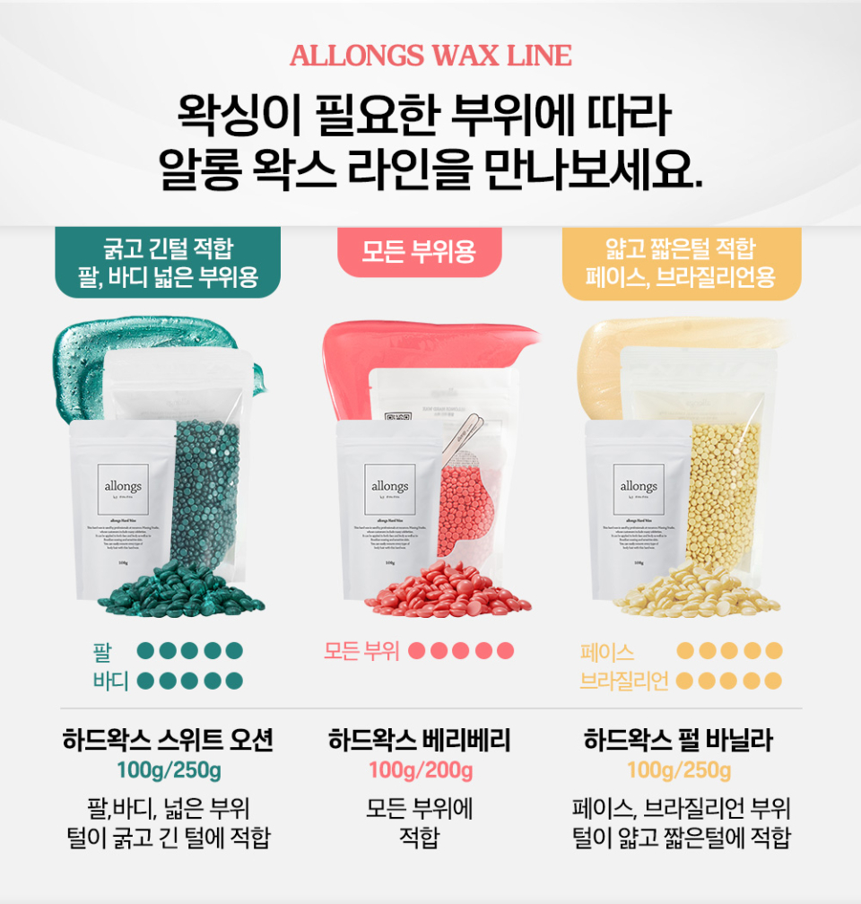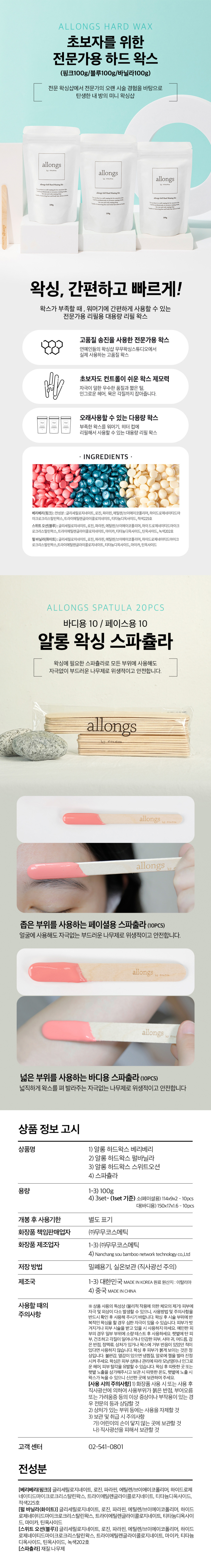 알롱(ALLONGS)은 청담동 무무왁싱스튜디오의 오랜 시술 경험을 바탕으로 론칭한 왁싱 브랜드입니다. 왁싱과 관련된 다양한 제품으로 이너 바디케어라는 새로운 카테고리를 개척하였습니다. 자연 유래 성분의 원칙을 꾸준히 지키며 클린 뷰티를 지향합니다.
