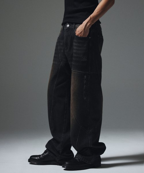 절개 워싱 데님 팬츠 블랙