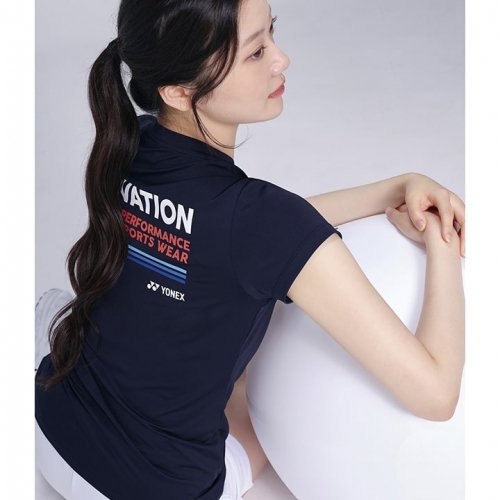 239TR012F 다크 네이비 여성용 레터링 포인트 반팔 티셔츠