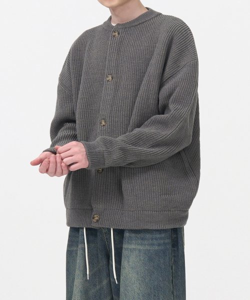 오버핏 라운드넥 니트 가디건 (BROWN)