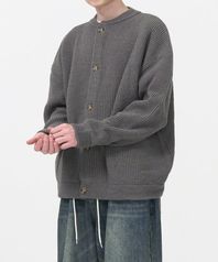오버핏 라운드넥 니트 가디건 (BROWN)