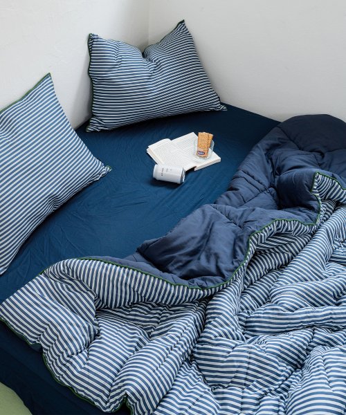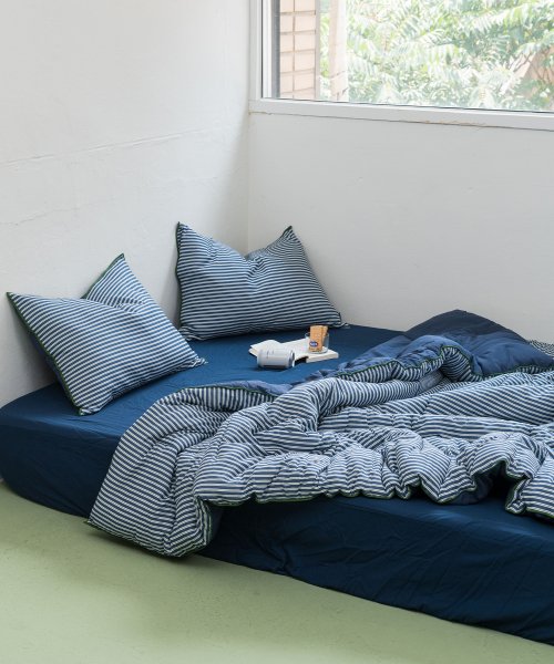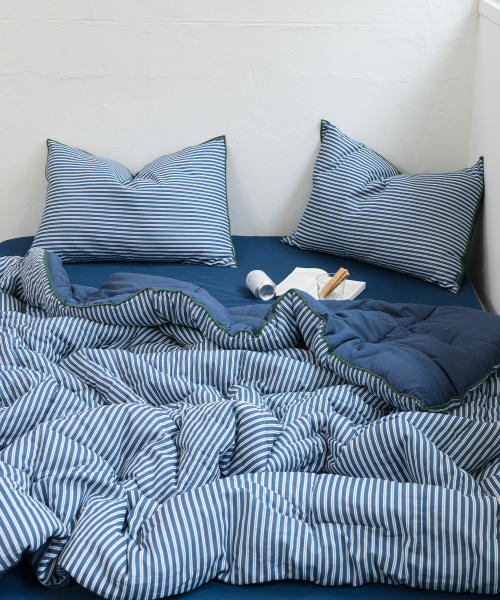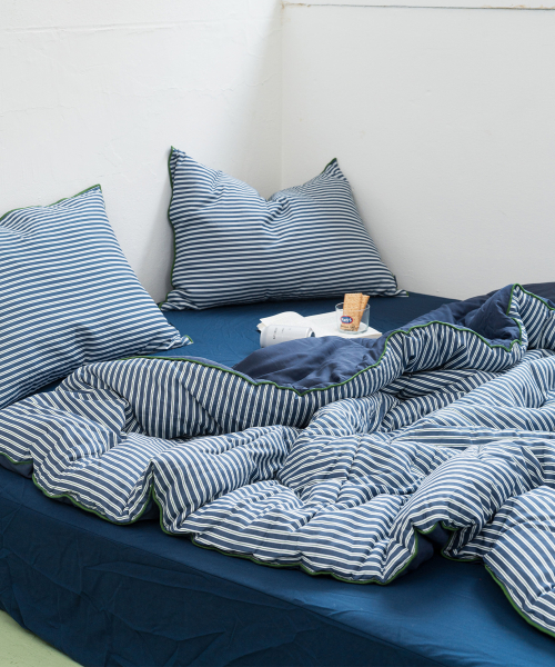 브리크 스트라이프 순면+렌징모달100% 체온조절 차렵이불세트 SS/Q 네이비그린