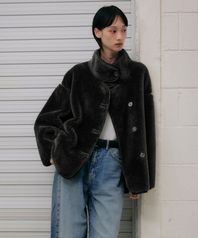 오버사이즈 하프 무스탕 코트 [블랙]