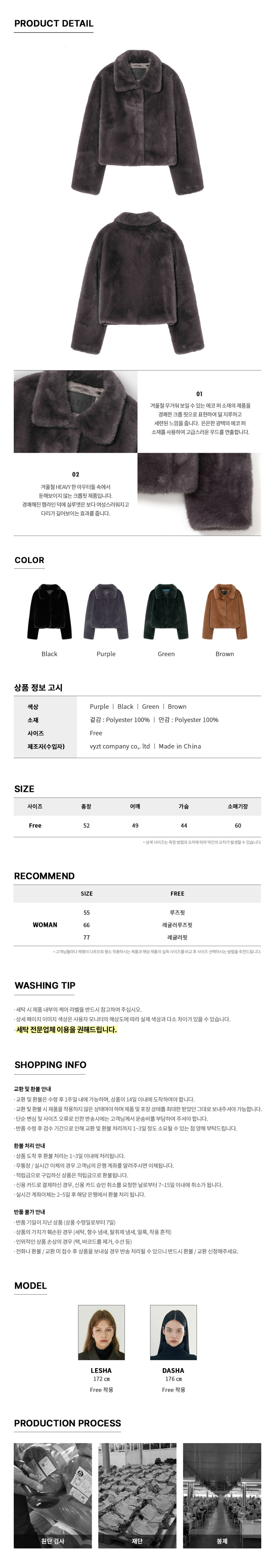 페이크 퍼 크롭 자켓 [퍼플]