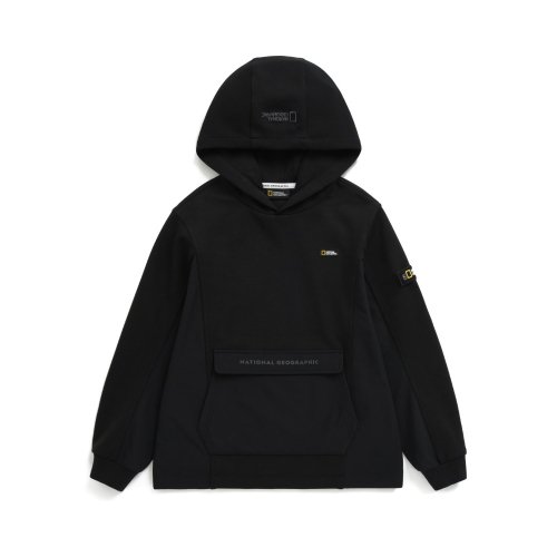 K233UHD940 우븐 배색 후드티셔츠 CARBON BLACK