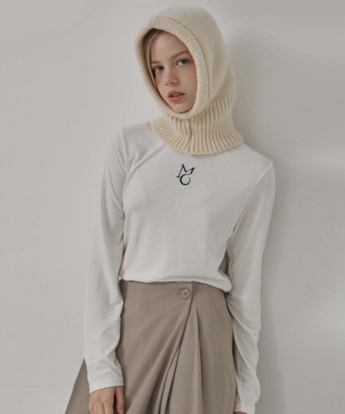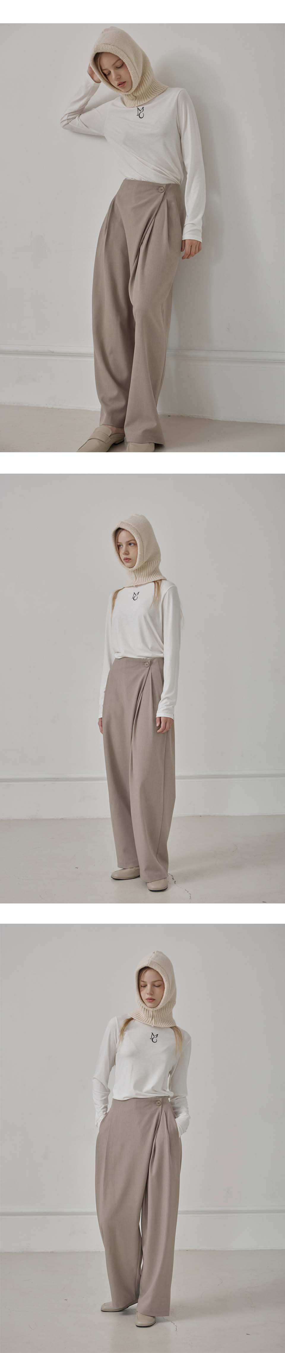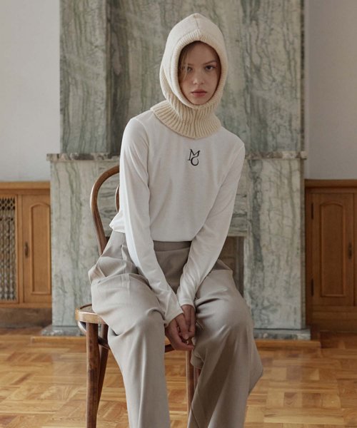 wool basic turtleneck top - gray beige