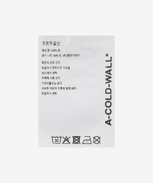 어 콜드 월(A COLD WALL)은 차가운 벽이라는 의미를 담고 있는 브랜드로, 현실 사회와 충돌하는 고정관념이나 선입견을 차가운 벽에 비유해 이를 깨부수고 새로운 미래를 제시하고자 탄생한 영국 스트릿 문화의 집약체입니다. 유스 컬처 무드에 이와 같은 사회적 메시지를 시각적으로 구현한 디자인을 선보이고 있습니다.