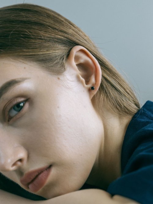 (4mm) 큐빅 귀걸이 - 블랙