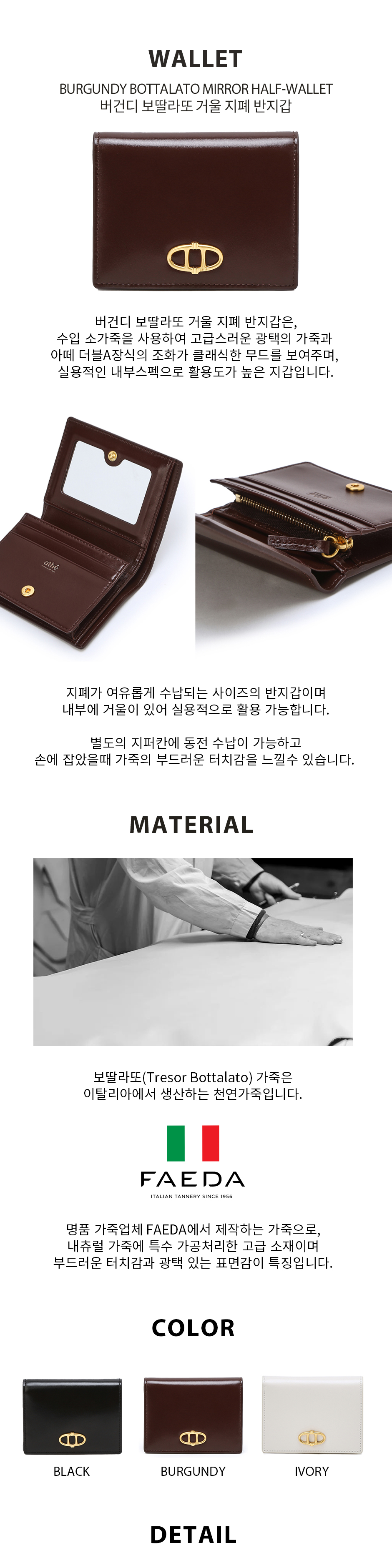 버건디 보딸라또 거울 지폐 반지갑 AAHO6F329D3