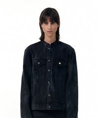 High neck denim biker jacket - BLACK