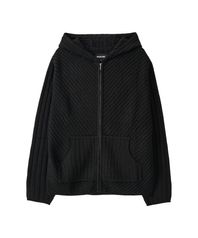 Rib Knit Hoodie Zip-Up - BLACK