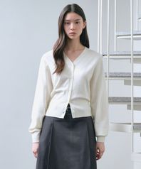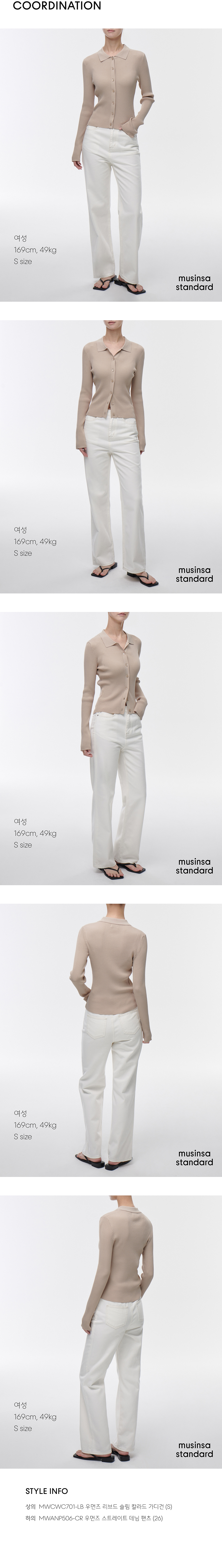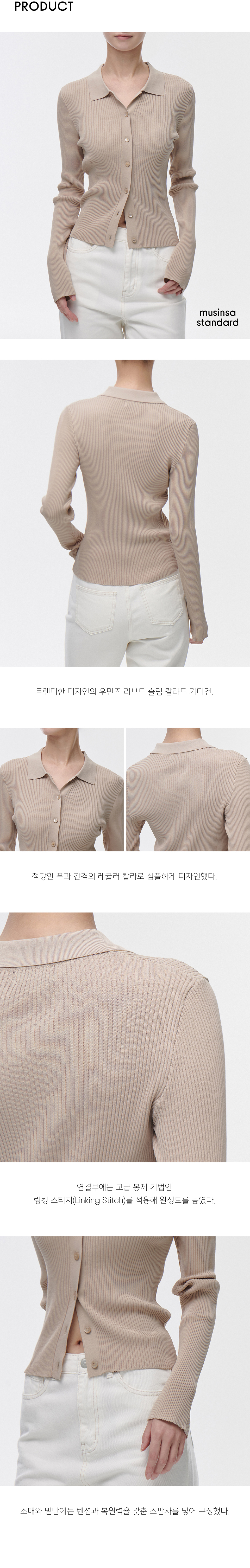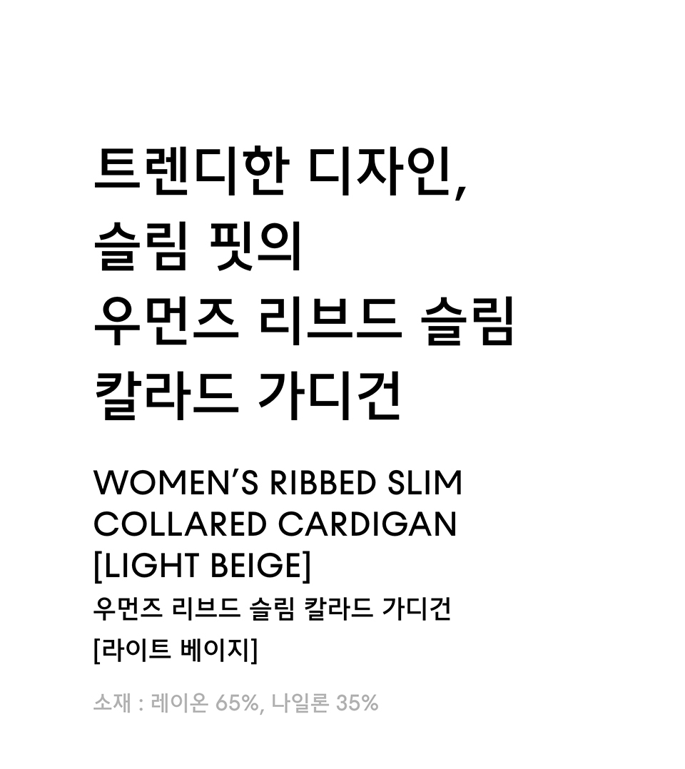 우먼즈 리브드 슬림 칼라드 가디건 [라이트 베이지]