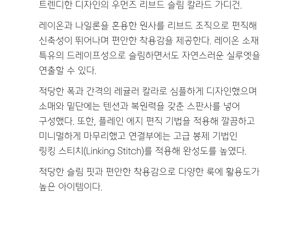 우먼즈 리브드 슬림 칼라드 가디건 [블랙]