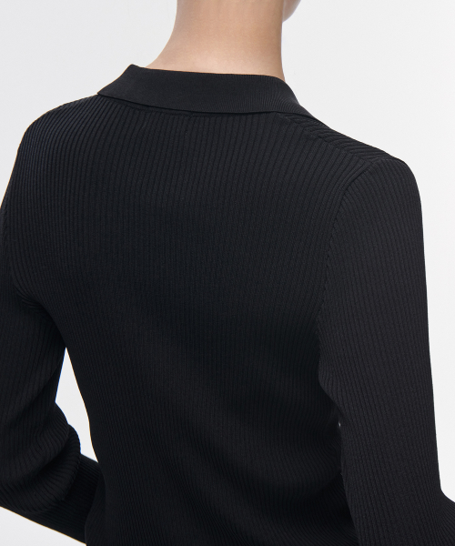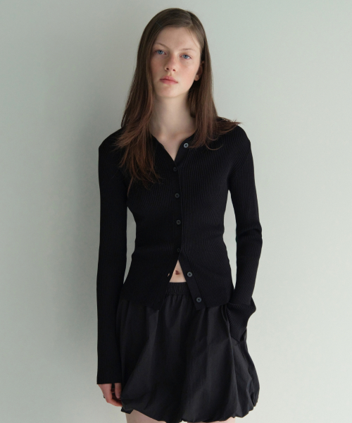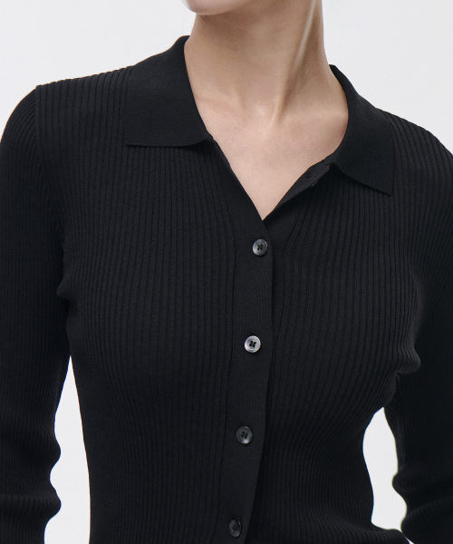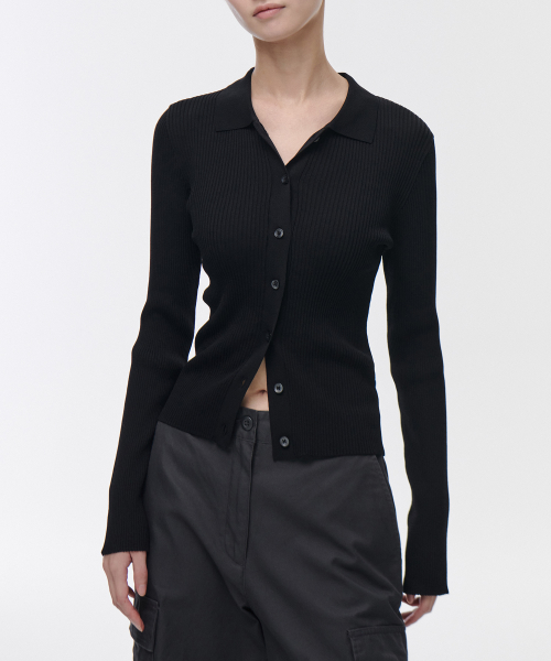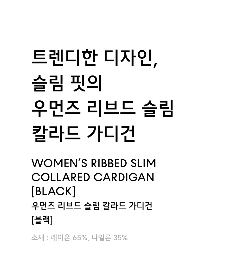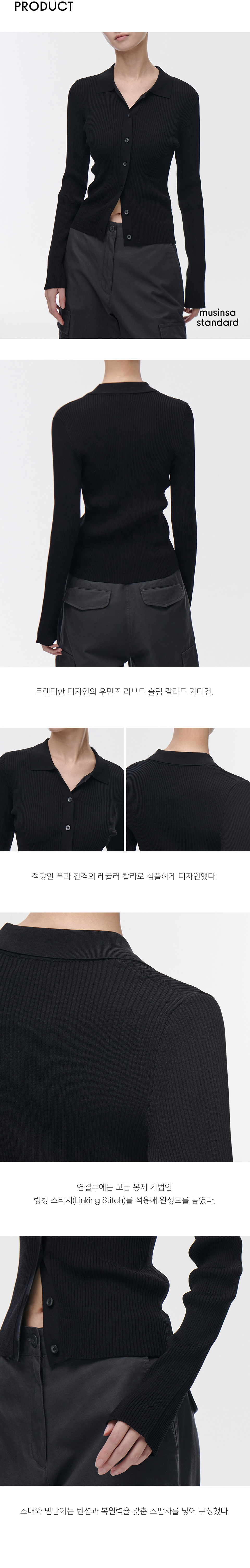 우먼즈 리브드 슬림 칼라드 가디건 [블랙]