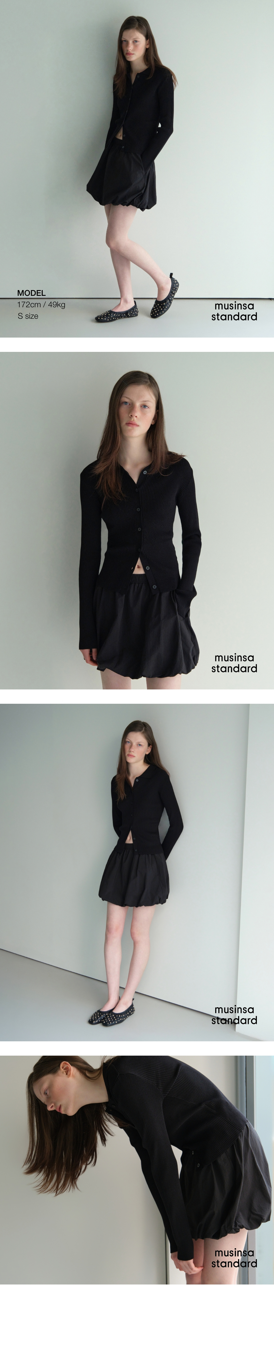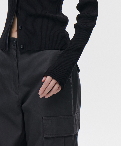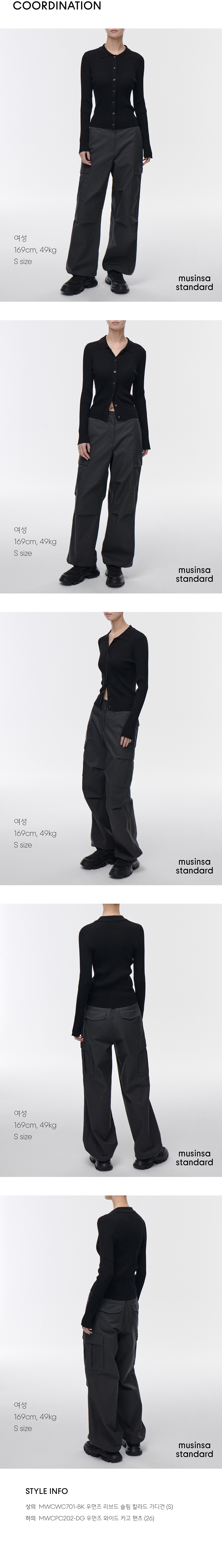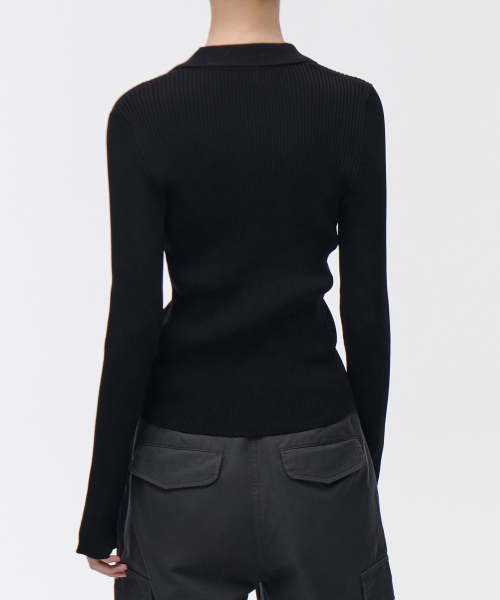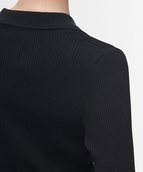우먼즈 리브드 슬림 칼라드 가디건 [블랙]