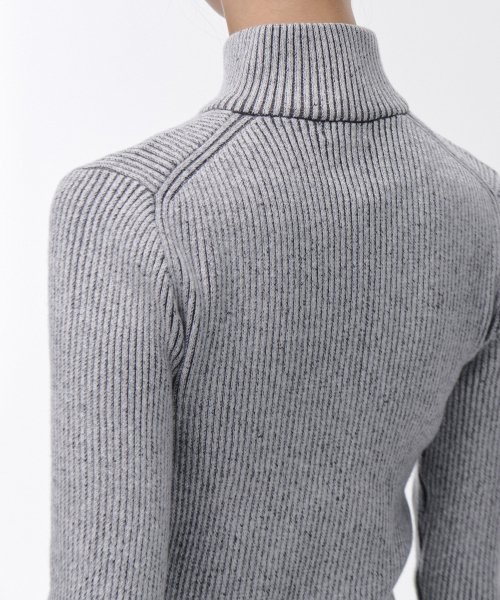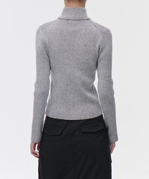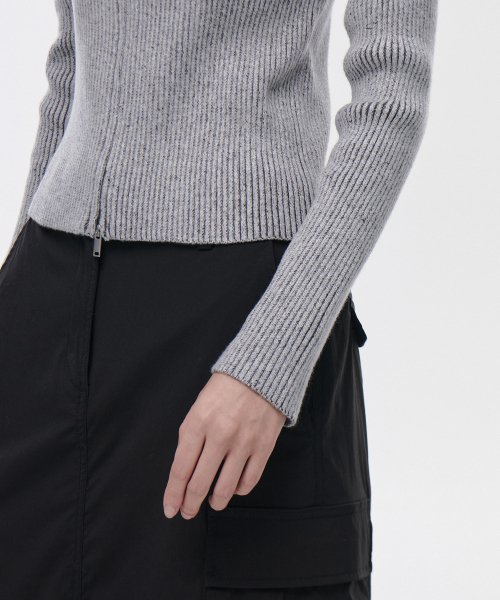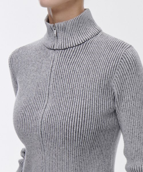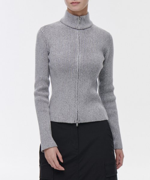 우먼즈 리브드 슬림 니트 집업 [투톤 그레이]