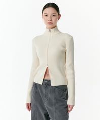 우먼즈 리브드 슬림 니트 집업 [크림]