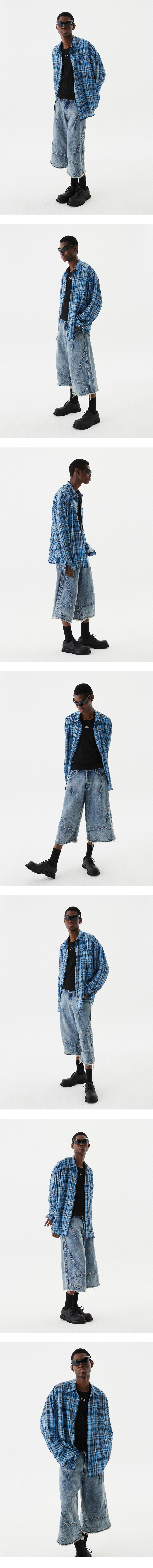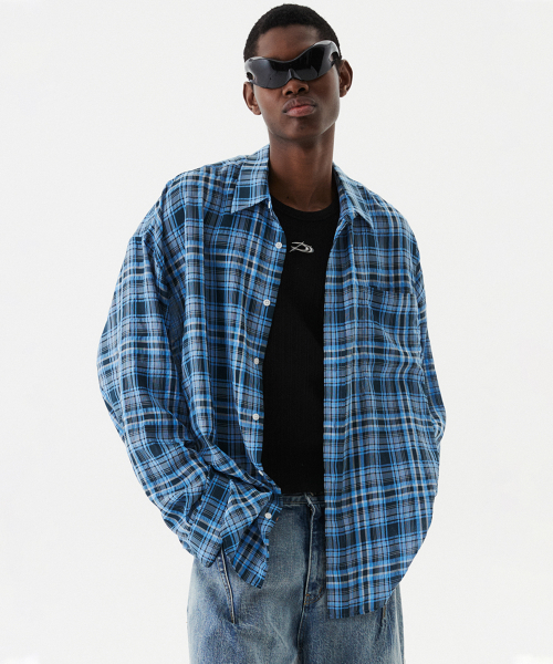 오버사이즈 체크 셔츠 블루