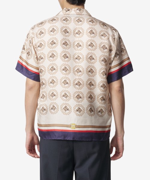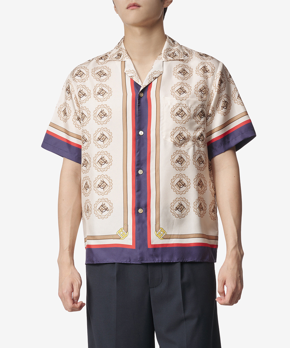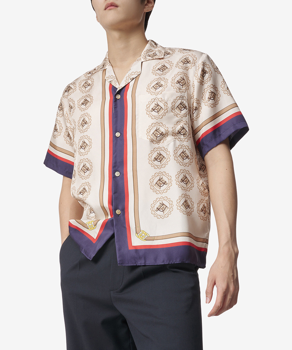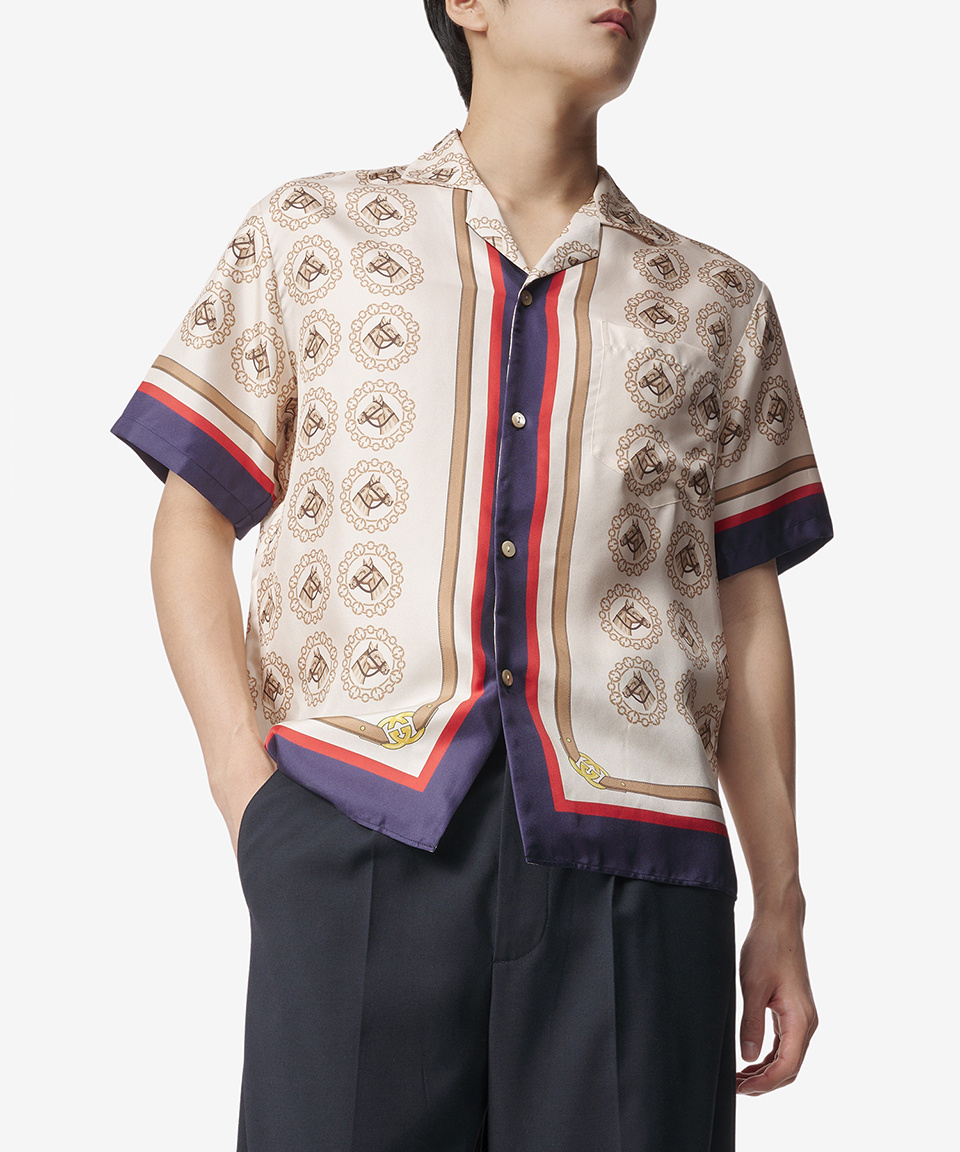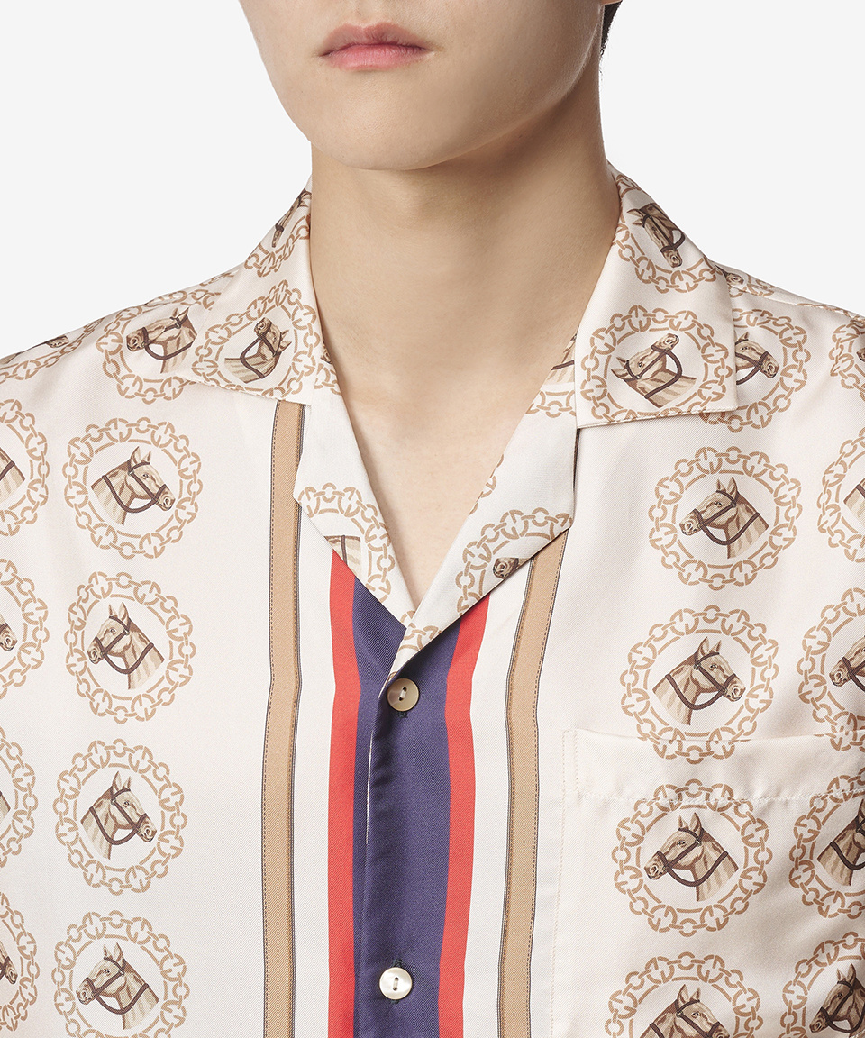실크 트윌 호스 프린트 반소매 셔츠 - 아이보리:골드 / 740319ZANKM9130
