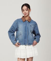 우먼스 카라배색 데님 워크자켓 블루