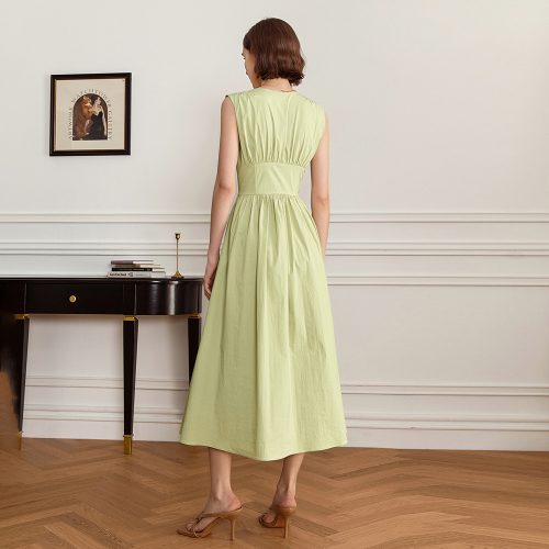 YY_V-neck waist pleats dress_LIGHT OLIVE