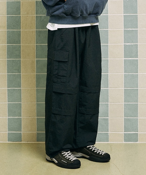원턱 나일론 파라슈트 카고팬츠 블랙