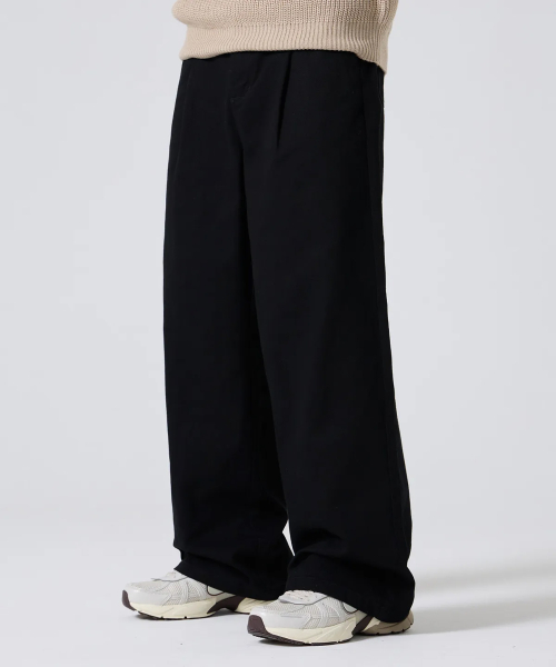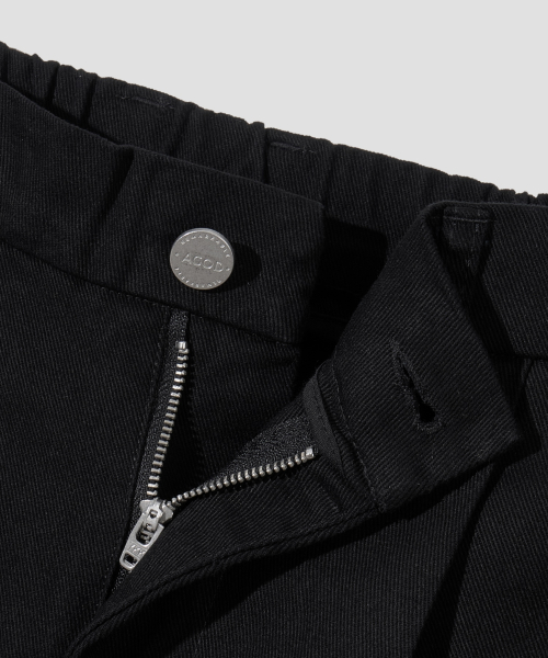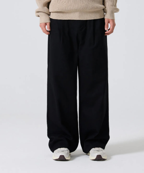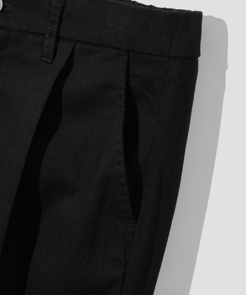 원턱 와이드 트윌 코튼 밴딩 팬츠 [블랙]