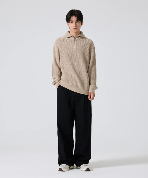 원턱 와이드 트윌 코튼 밴딩 팬츠 [생지]
